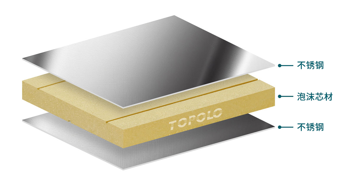 • 三明治面板表面使用食品级奥氏体不锈钢。