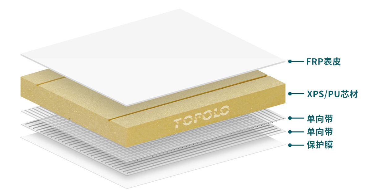 FRP(玻璃纤维增强塑料)复合材料取代了金属板,用于制造冷藏卡车车身,这是车身制造技术上的一项突破。FRP材料轻质、防水且具备隔热功能,是冷藏卡车车体外皮的理想材料。TOPOLOGROUP 创造性地将热固性 FRP 与热塑性 FRP(CFRT 连续纤维增强热塑料)结合,使冷藏卡车车体外观美观、易于清洁、耐用且具成本效益。