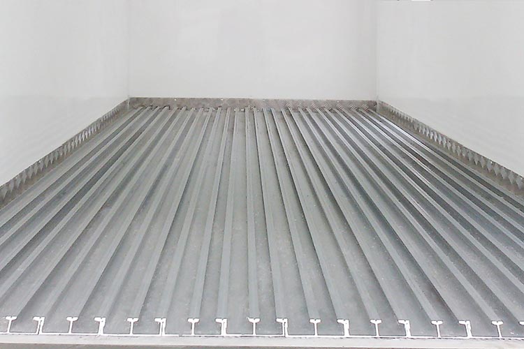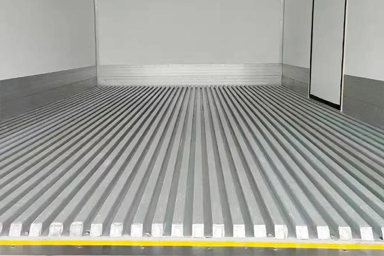铝合金地板通常重量轻、耐腐蚀、强度高、耐低温,适合在冷藏车中长期使用。单体铝合金地板比较湿滑,可能需要进行一些防滑设计,以保证货物在运输过程中的稳定性。
