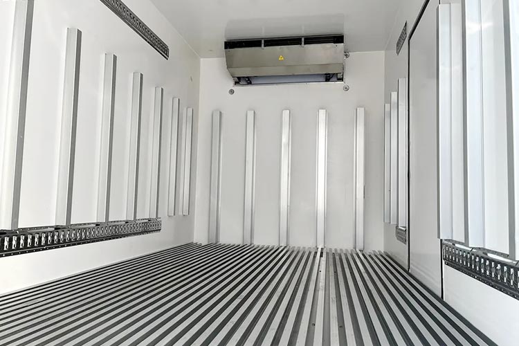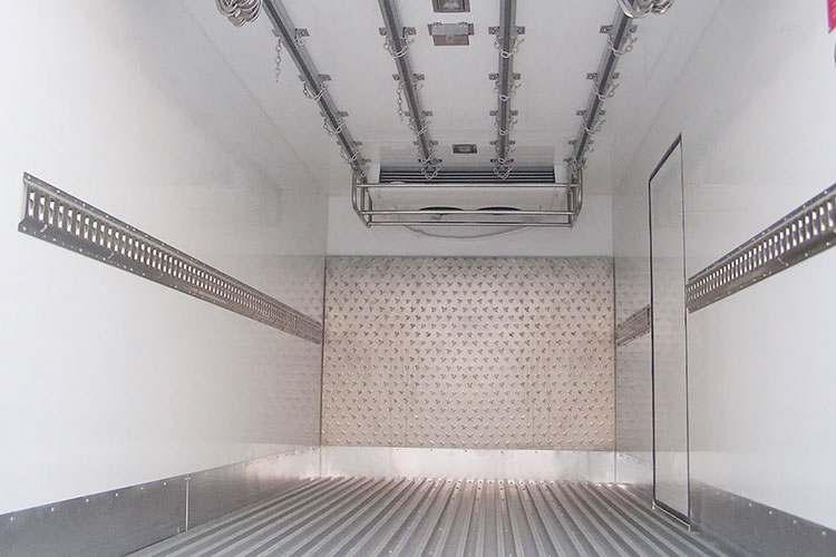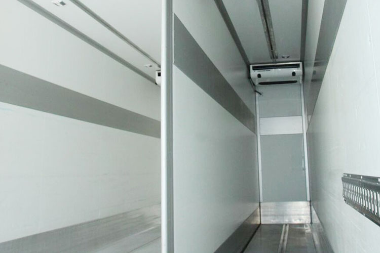 绝缘材料在维持冷藏卡车箱内所需温度方面起着至关重要的作用。高质量、隔热良好的箱体面板可以降低能耗并有助于保持稳定的温度。如今,冷藏卡车箱大多由泡沫夹芯板制成。常见的芯材包括PU(聚氨酯)泡沫、XPS(挤塑聚苯乙烯)泡沫、PVC(聚氯乙烯)泡沫。常见的蒙皮材料包括FRP(玻璃钢)、铝、预涂钢等。保温板层越厚,保温效果越好,能效越高。根据温度要求,厚度通常应至少为 50 毫米至 100 毫米。