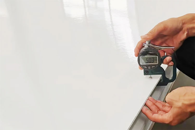 特谱勒配备了最宽的扁平玻璃钢生产线,卷材宽度可达3.2m,板宽可达3.6m。玻璃钢厚度为0.7-5.0mm。它是无碱玻璃纤维毡和抗老化树脂的混合物,具有良好的韧性和弯曲强度。表面采用高端抗老化胶衣,厚度可达0.6mm。扁平玻璃钢板由机器连续制造,没有长度限制。
