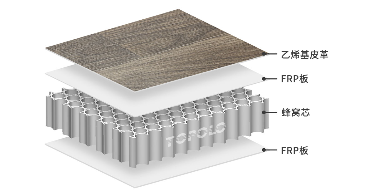 • 蜂窝芯:通常使用热塑性PP(聚丙烯)蜂窝。由于其低密度和高结构强度,可以大幅减轻地板重量。