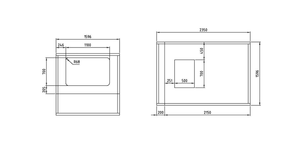 - 外部尺寸:2350 x 1596 x 1550mm。