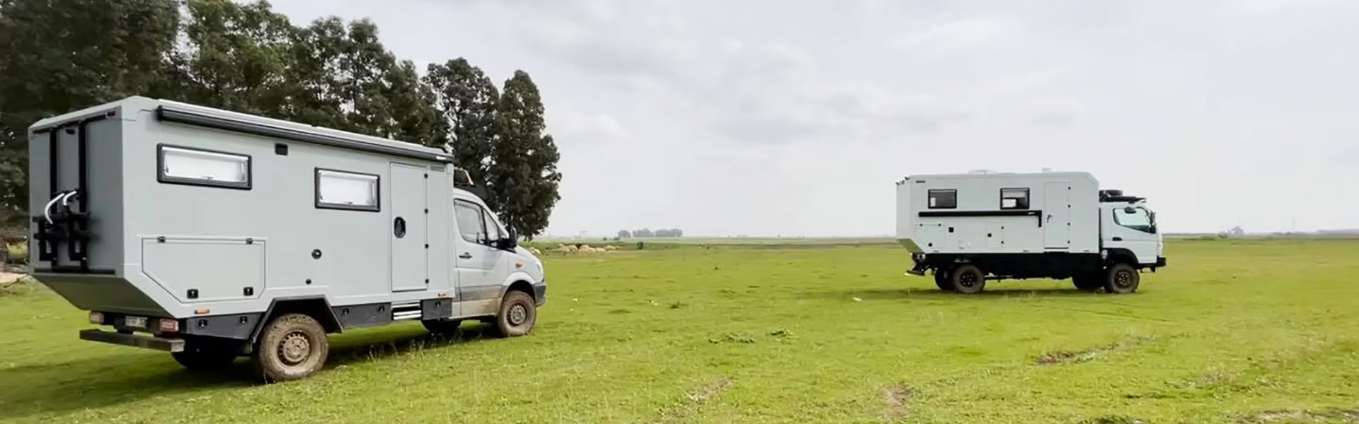 探险卡车车身由高性能玻璃钢夹芯板制成。玻璃钢夹芯板复合技术为箱体提供了顶级的性能强度。这些面板的表面具有防水和抗紫外线功能,可适应各种极端天气条件。我们不同类型的箱体面板(XPS/PU保温泡沫)可以满足不同性能的箱体结构。