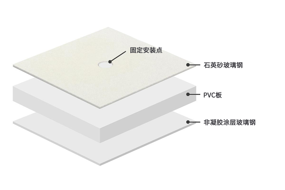 石英砂 FRP 表面提高了攀岩墙板的抓地力和耐磨性,给用户带来触摸天然岩石的感觉。并且在潮湿环境中,石英砂的防滑性能仍然很好,适用于各种气候条件。FRP的颜色可以根据用户喜好进行定制。