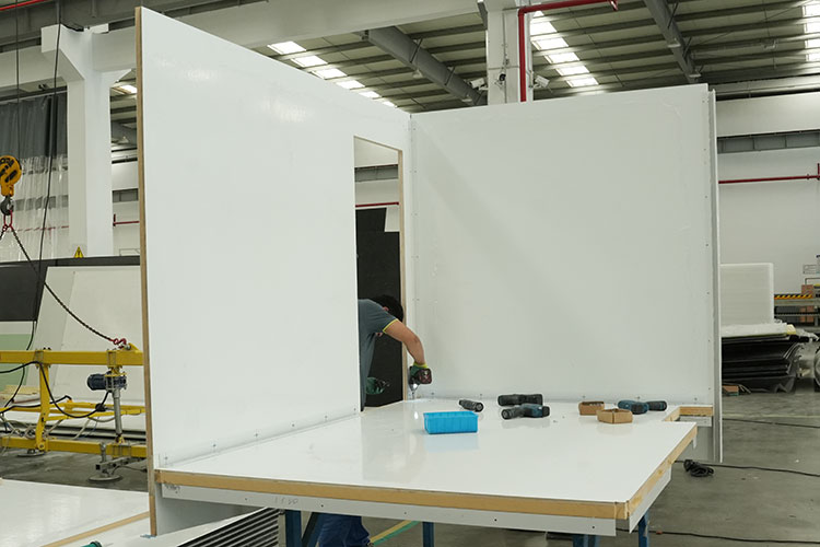 - 一体式夹芯板生产线:复合板在真空和高压下生产,以保证面板的粘合强度和平整度。