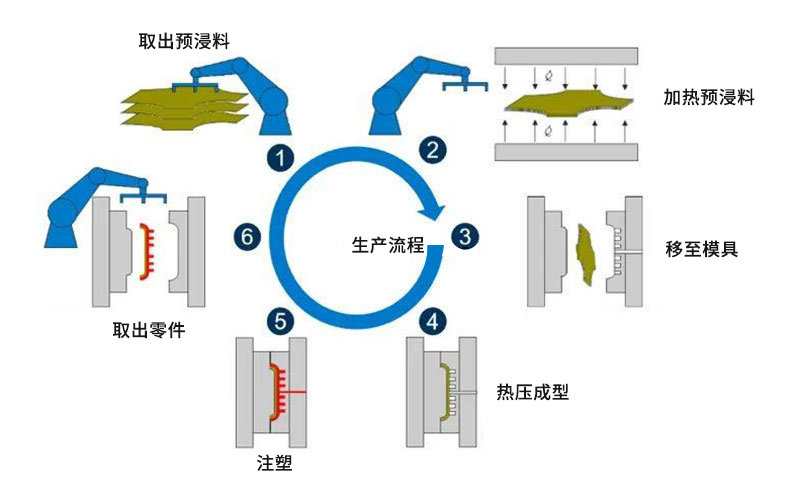 - 碳纤维和热塑性树脂复合片(如聚丙烯、聚乙烯或聚酰胺)在加压下成型成所需形状以便大规模生产,这大大降低了制造成本,相较于制造金属保险杠。