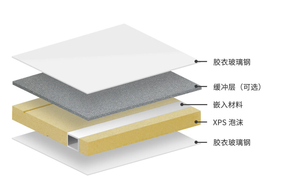 - 墙体材料:50mm FRP 饰面 XPS 泡沫夹芯板。