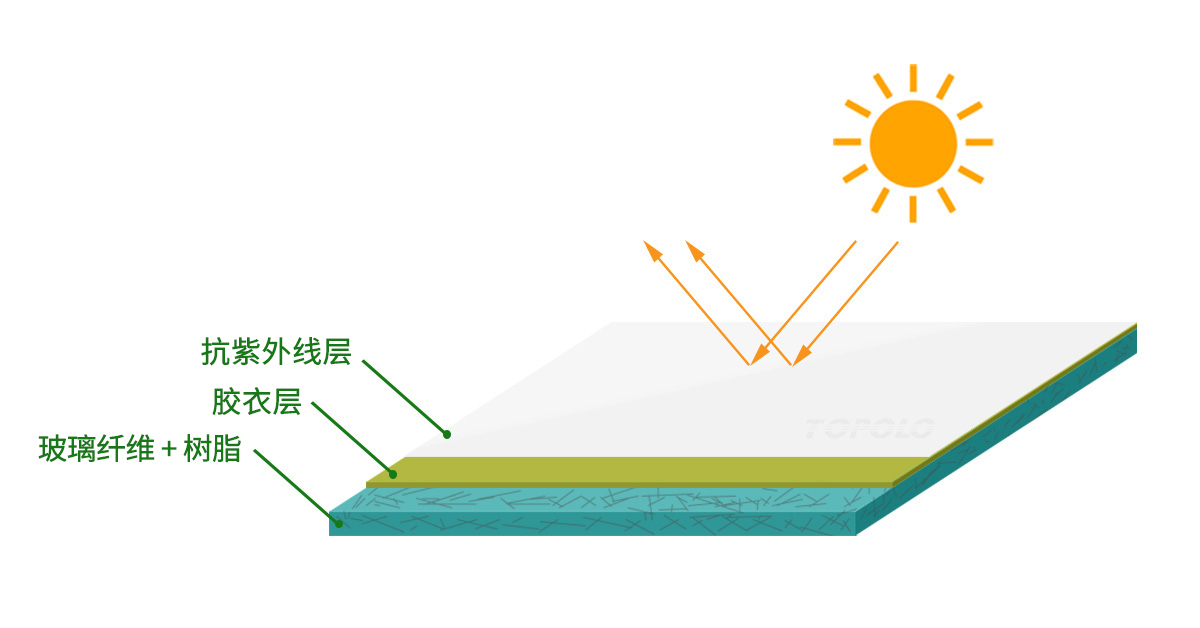 玻璃钢表面采用耐候凝胶涂层,玻璃钢墙板在长期户外或强光环境下不会褪色、变色、变脆。