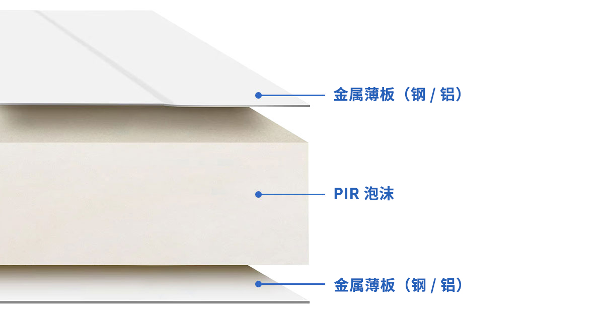 • 采用B1级PIR泡沫作为芯材,具有优异的隔热性能、耐火性以及高低温稳定性。