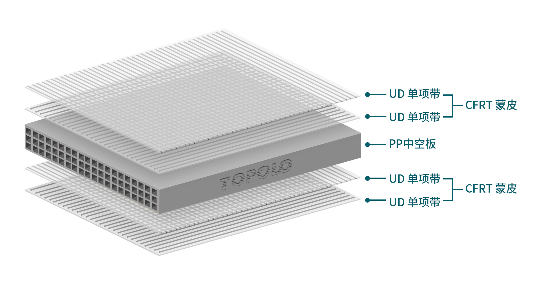 虽然PP中空板具有良好的性能和可重复使用的优点,但多次使用后,其表面可能会被混凝土侵蚀,造成一定程度的磨损和损坏,从而影响下一栋浇筑建筑的质量。为了延长使用寿命,提高效率,特谱勒创新地将CFRT(连续纤维增强热塑性复合材料)与PP中空板相结合。通过这种复合技术,不仅提高了表面的耐久性和耐腐蚀性,还增强了整体结构的强度和稳定性,大大延长了PP中空板的重复使用次数,达到了100倍以上。