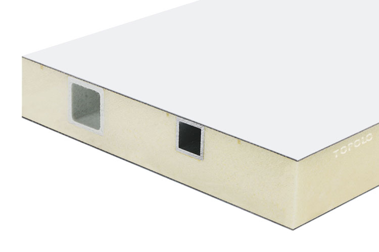 为了寻求更大面积、更高强度的PU发泡夹芯板,通常会嵌入各种材料,包括木材、钣金、型材等,这些材料有效地增强了夹芯板的结构强度和刚度,显着提高了面板抵抗外界冲击的能力,实现了更高的安全性和耐用性。