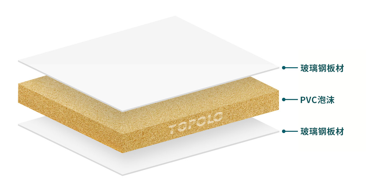 PVC泡沫玻璃钢夹芯板结合了PVC(聚氯乙烯)泡沫和玻璃钢(玻璃纤维增强塑料)的特性,生产出具有一系列优异性能的面板。采用一体式复合工艺制造的夹芯板比喷涂泡沫夹芯板性能更稳定,应用范围更广。