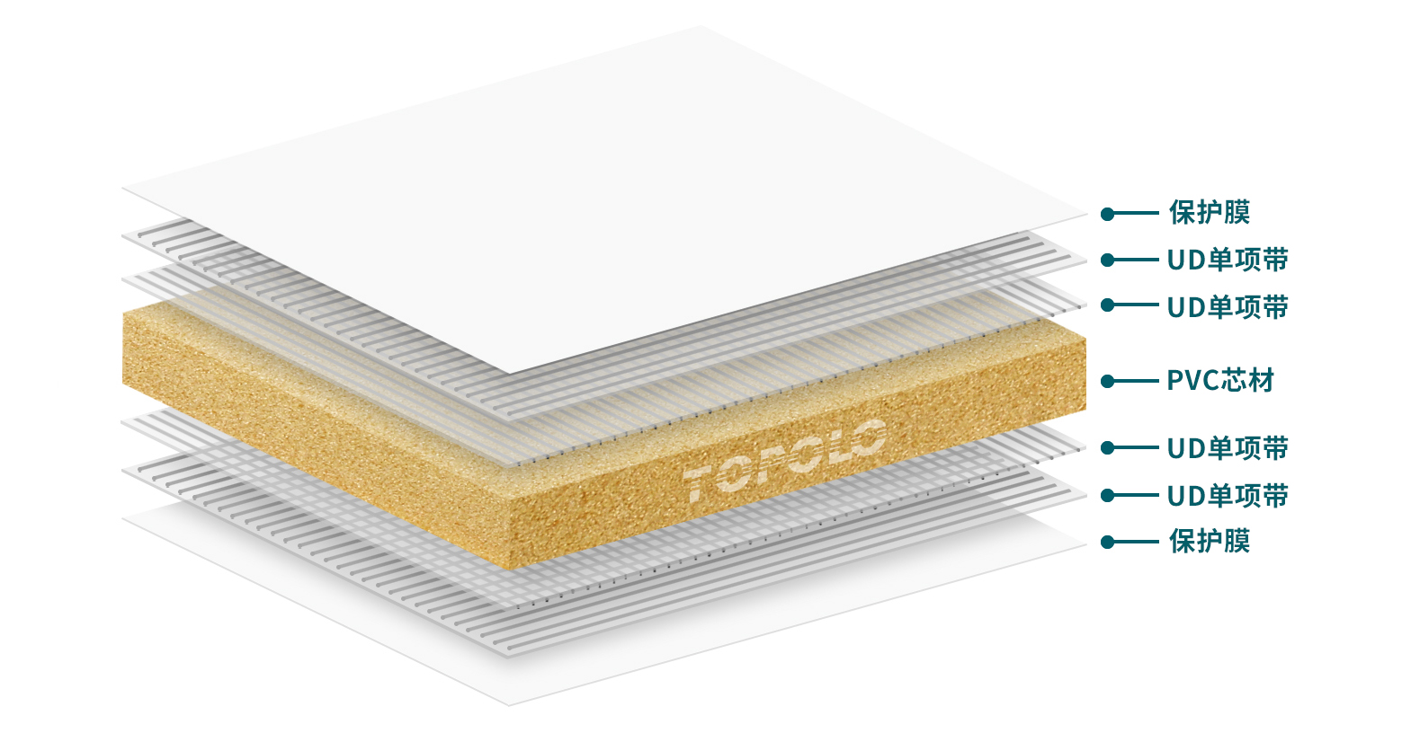 该材料是硬质 PVC 泡沫和 CFRT(连续纤维增强热塑性塑料)的复合材料。使用 CFRT 代替热固性 FRP(玻璃纤维增强塑料),以实现更耐用、更坚固的夹芯板结构。