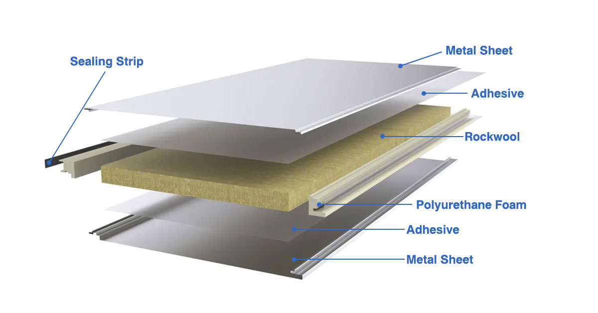 Rockwool sandwich panels make full use of the unique properties of rockwool core materials, and perform well in key functions such as fire prevention, heat preservation, waterproofing, and sound insulation. They also have high structural strength and are easy to install.