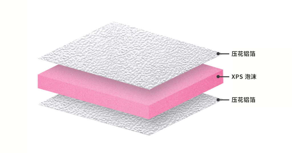 铝箔皮XPS保温板芯材为XPS(挤塑聚苯乙烯)挤压板,外皮为压花铝箔。箔片充当反射屏障以最大限度地减少热传递,而 XPS 泡沫则提供高 R 值绝缘。XPS泡沫芯材具有完全闭孔蜂窝结构,其优点是保温性能好、抗压强度高、重量轻、耐磨、不吸水、不降解等。由于铝箔的反光性能,可以保护XPS免受损坏,双面铝箔的XPS发泡板具有更好的隔热、防潮和耐压性能。同时,它为整个保温系统提供了更好的保护和装饰,使其使用寿命更长。