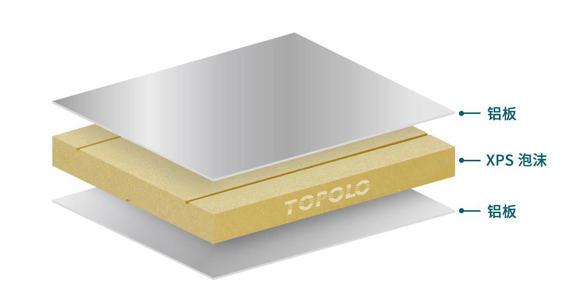 夹芯板以挤塑聚苯乙烯(XPS)泡沫为芯材,夹在两块铝板之间,将XPS芯材优异的隔热性能与铝板的耐用性、强度和耐候性相结合。使用铝板代替 FRP(玻璃纤维增强塑料)或木材作为夹芯板的表皮可以显着提高其强度和耐用性。它的诸多优点集中在: